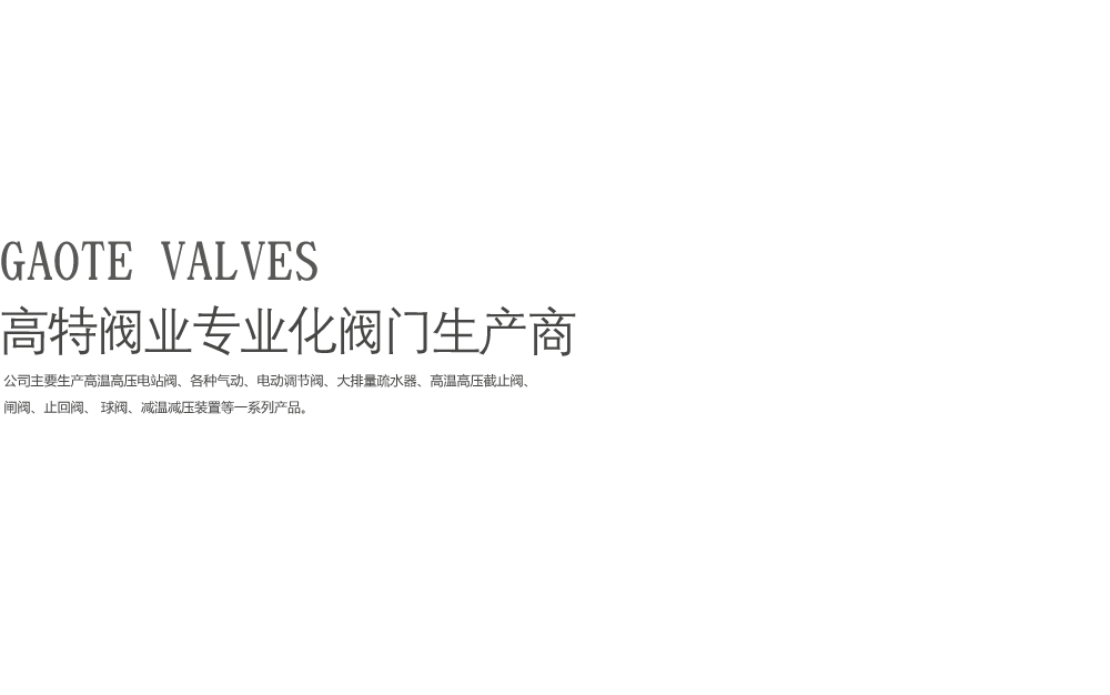 公司主要生產(chǎn)高溫高壓電站閥、各種氣動、電動調(diào)節(jié)閥、大排量疏水器、高溫高壓截止閥、